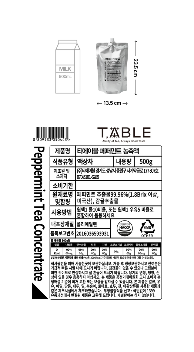 티에이블 페퍼민트 티 농축액 500g