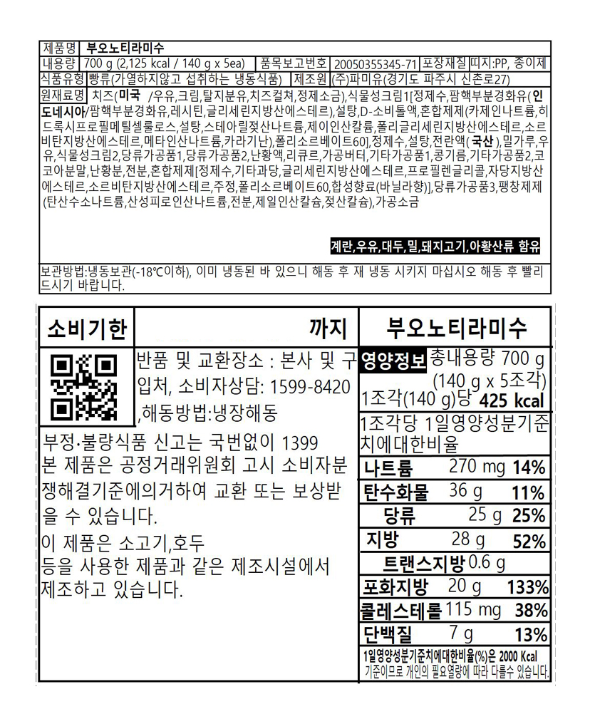 부오노티라미수 조각케익 140g
