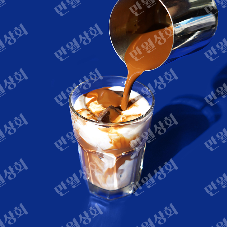 밀크티 파란배경 사진
