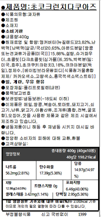| 보관방법 | 냉동보관 |
